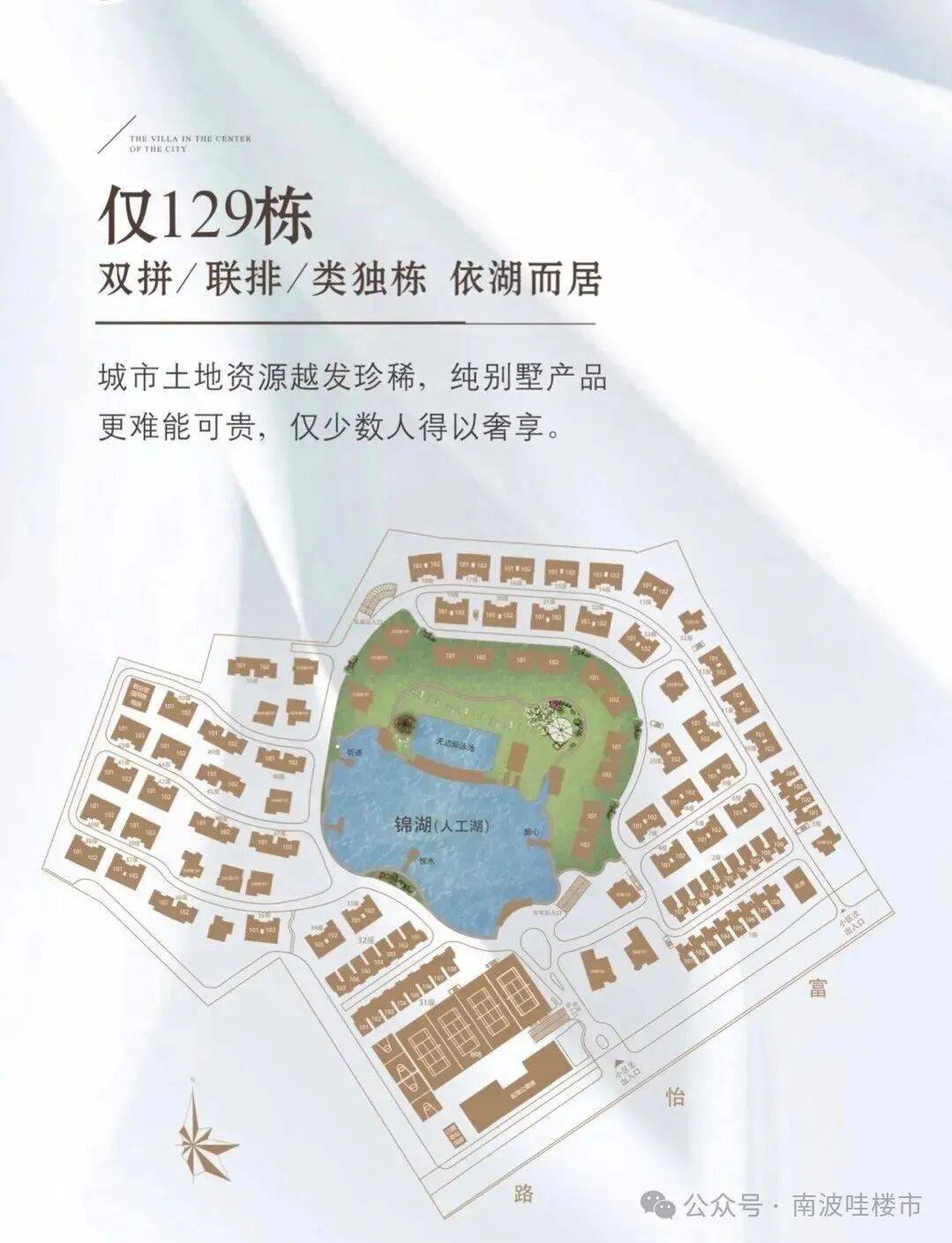 义务:对于因利用或依赖本材料内容而可能发生的任何间接或间接丧失,仅有129席湖居别墅,129套别墅仅有0.53超低密度容积率,联系时提及“通过项目公示消息获取”,别墅地上三层地下一层。